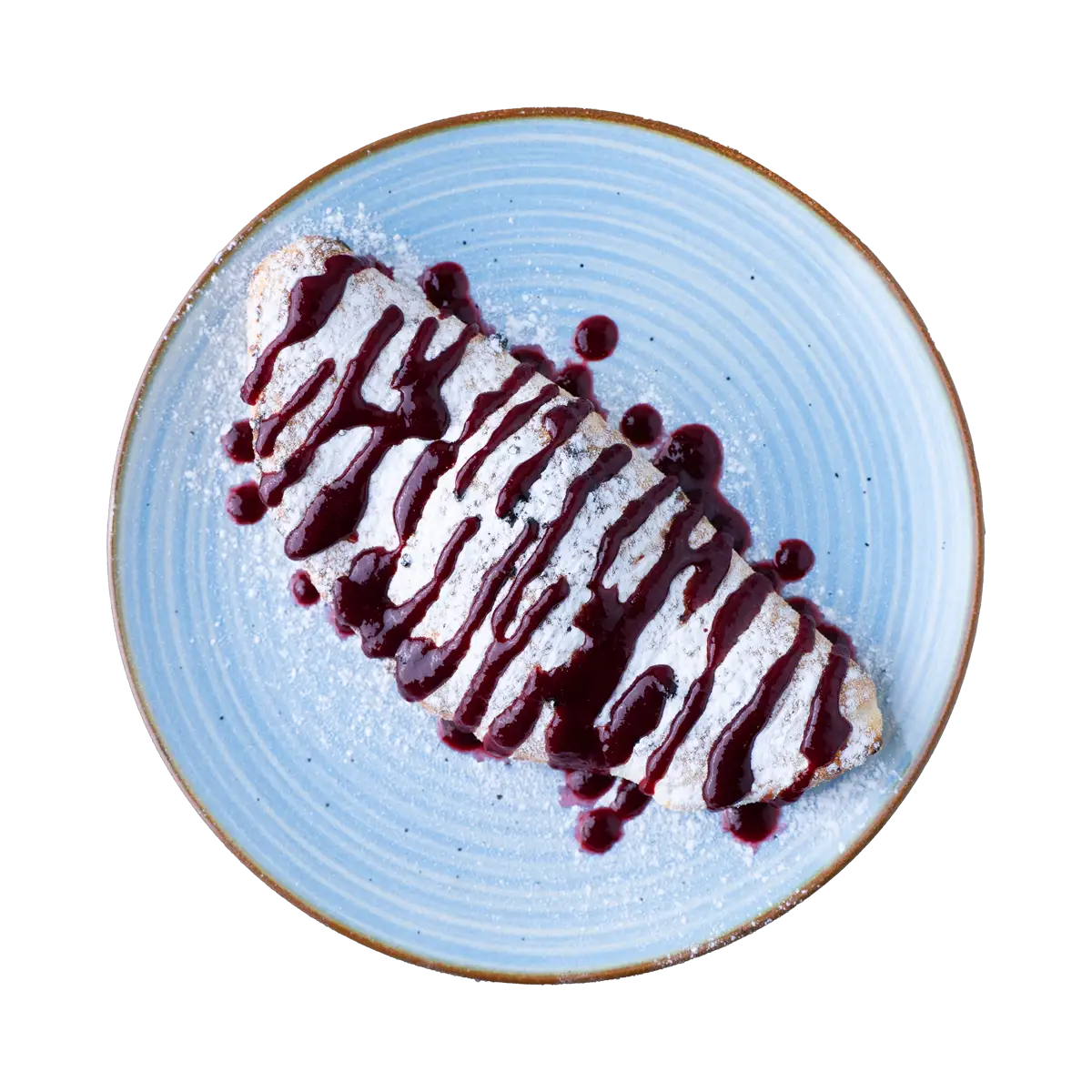 Süßer Calcone gefüllt mit cremigem Mascarpone und italienischer Haselnusscreme. Hausgemachtes Kirsch-Topping und Puderzucker runden dieses dekadente Dessert perfekt ab.