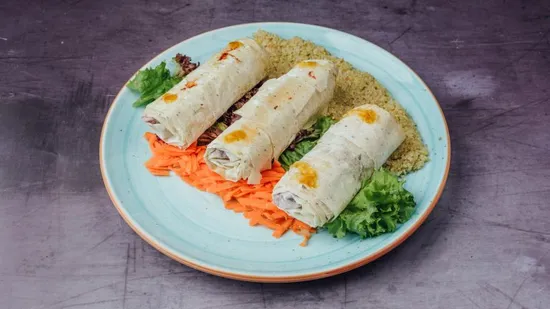 Leichte und knusprige Brötchen mit einer reichhaltigen Füllung aus Gemüse und Hirse, mit Zusatz von Sojasauce, die eine leichte Würze und ein Aroma des Ostens verleiht.