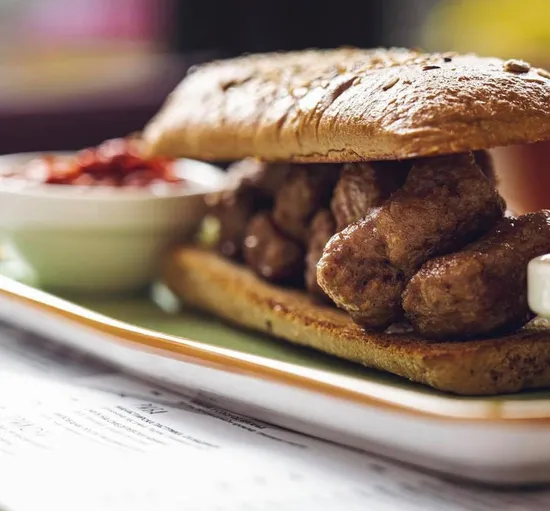Traditionelle hausgemachte Kebabs aus Rindfleisch höchster Qualität, serviert mit Fladenbrot, Ajvar und Sahne. Klassisch, hausgemacht und unwiderstehlich.