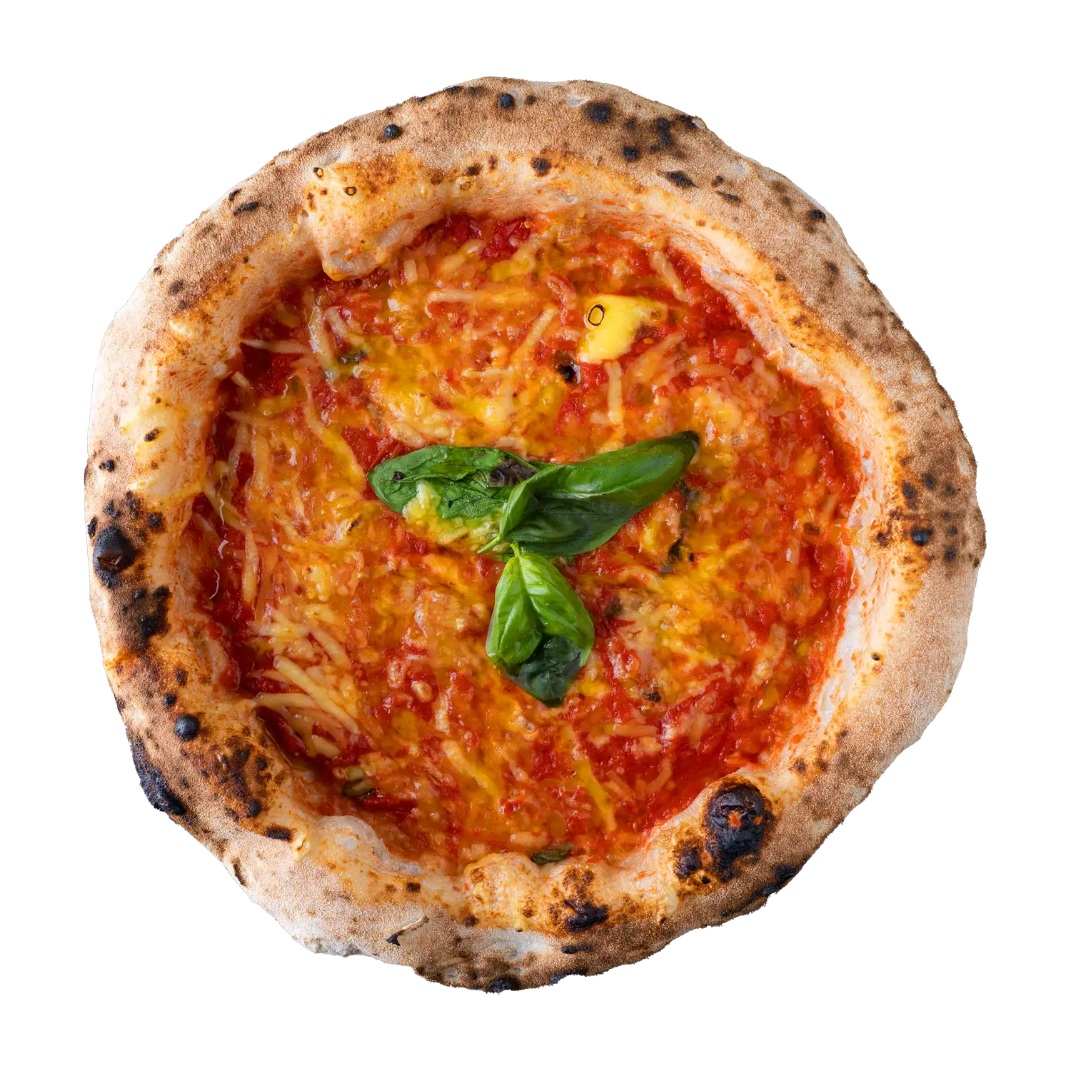 Eine vegane Version der klassischen Margherita. Geschälte Tomaten, cremiger Kräutermozzarella, frisches Basilikum und Olivenöl auf einem knusprigen Teig. Einfach und lecker.
