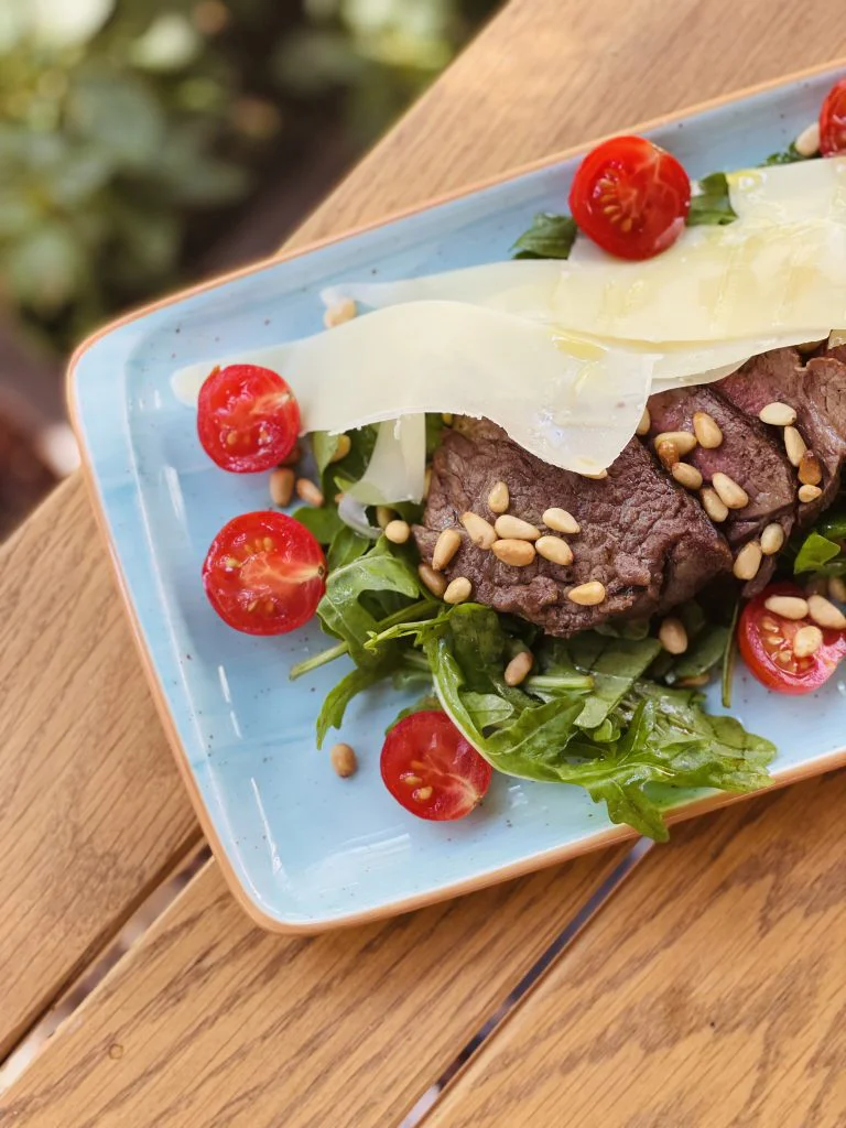 The juicy steak is cut into thin melted fillets and served on a bed of fresh arugula, sprinkled with parmesan sheets and juicy cherry tomatoes. A combination of flavors that combines the elegance of Italian cuisine with the perfect balance of textures.