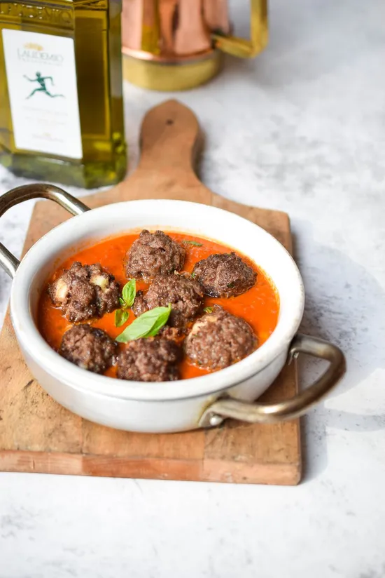 Dinstane juneće ćuftice pečene u paradajz sosu i posute parmezanom, uz aromu svežeg peršuna – rustično italijansko jelo puno ukusa.