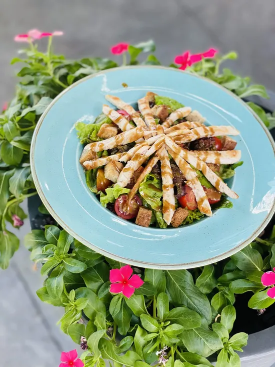 Miks zelenih salata, krutoni od speltinog brašna, grilovana piletina, preliv