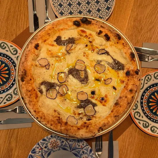 Пицца, сочетающая в себе элегантность и насыщенный вкус — сливочный трюфельный соус и растопленная моцарелла станут идеальной основой для тонких ломтиков брезаолы, свежих помидоров черри и рукколы. Завершающий штрих выдержанного сыра Пармиджано Реджано и Aceto Balsamico di Modena обеспечивает сбалансированную гармонию вкусов