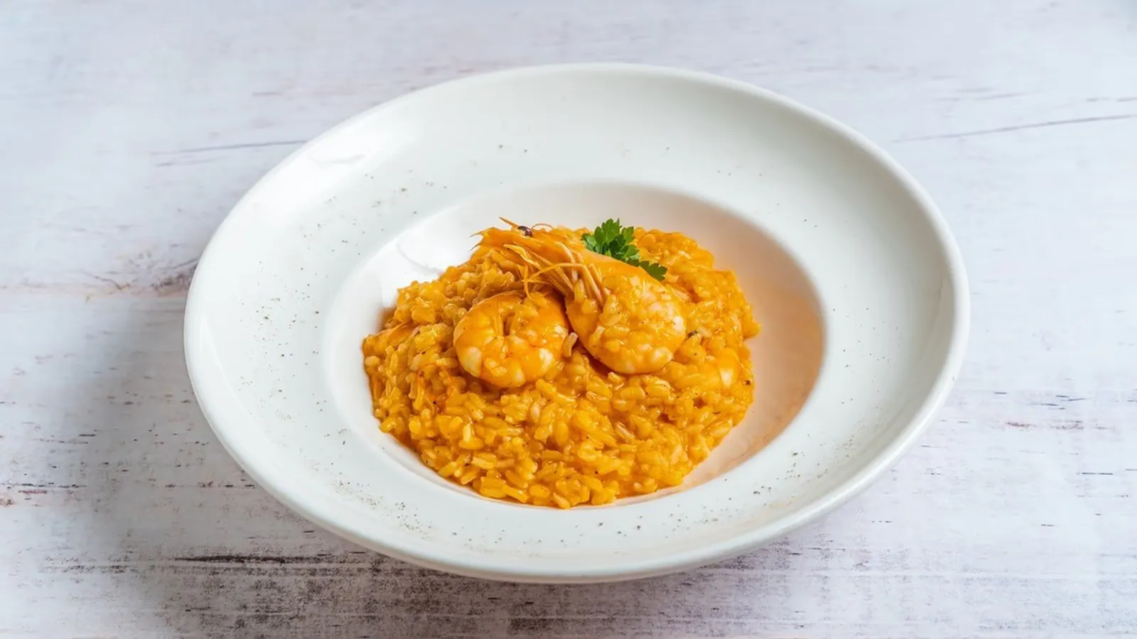 Средиземноморское ризотто с морепродуктами и ароматным томатным соусом.